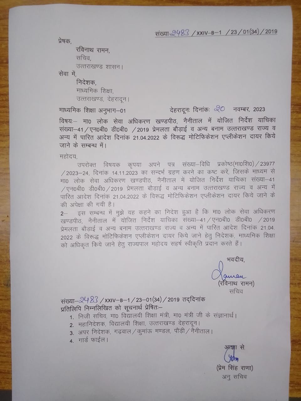 देहरादून। राजकीय शिक्षक संगठन के द्वारा शिक्षकों की मांग को लेकर चल रहे आंदोलन को लेकर बड़ा अपडेट है,शिक्षा महानिदेशक बंशीधर तिवारी के द्वारा राजकीय शिक्षक संघ के पदाधिकारी के साथ बैठक की गई है जिसमें कई मांगों पर सहमति बनी है खास बात यह है कि एलटी से प्रवक्ता पदों पर प्रमोशन को लेकर जो रोक ट्रिब्यूनल कोर्ट के द्वारा लगाई गई है,उस रोक को हटाने लेकर शिक्षा विभाग के द्वारा ट्रिब्यूनल कोर्ट याचिका दायर की जाएगी। जिसके लिए शिक्षा सचिव रविनाथ रमन ने माध्यमिक शिक्षा निदेशक सीमा जौनसारी का अधिकृत किया है,कल शिक्षा विभाग के द्वारा याचिका दायर कर दी जाएगी।