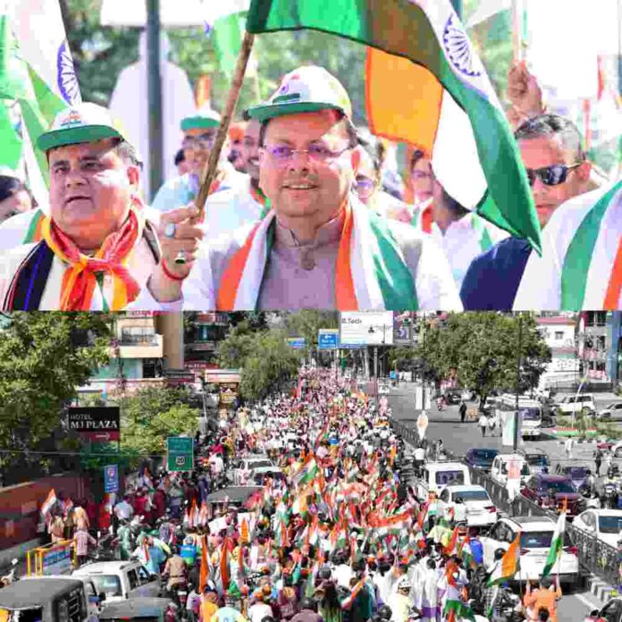 देहरादून। मुख्यमंत्री पुष्कर सिंह धामी के नेतृत्व में बुधवार को शौर्य स्थल चीड़बाग से गांधी पार्क तक भव्य “तिरंगा शौर्य सम्मान यात्रा” का आयोजन किया गया। यह यात्रा हाल ही में भारतीय सशस्त्र बलों द्वारा सफलतापूर्वक चलाए गए “ऑपरेशन सिंदूर” की ऐतिहासिक विजय को समर्पित रही। हजारों की संख्या में आमजन, पूर्व सैनिक, युवा वर्ग एवं मातृशक्ति ने तिरंगे के साथ पद यात्रा में भाग लिया। मुख्यमंत्री ने इस अवसर पर शौर्य स्थल पर पुष्प चक्र अर्पित कर शहीद जवानों को श्रद्धांजलि भी दी।