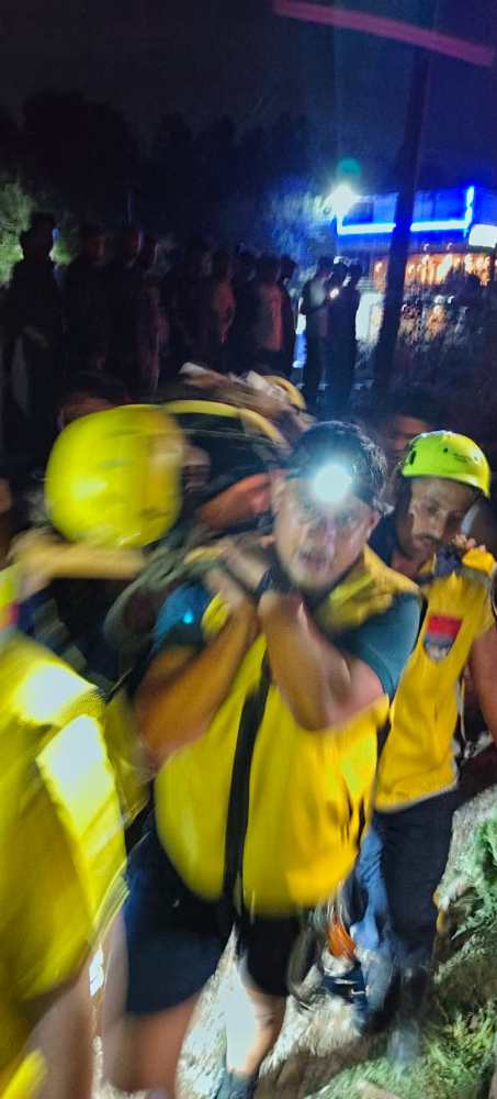 लगभग 200 मीटर गहरी खाई में फंसे घायल युवक को निकाला