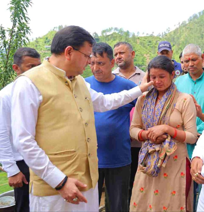 देहरादून। मुख्यमंत्री पुष्कर सिंह धामी ने गुरुवार को पौड़ी जनपद के आपदाग्रस्त क्षेत्र सैंजी का स्थलीय निरीक्षण किया। इस दौरान उन्होंने आपदा प्रभावित ग्रामीणों से उनका हालचाल जाना एवं आपदा से हुए नुकसान के बारे में जानकारी ली। उन्होंने प्रभावितों को आश्वस्त किया कि राज्य सरकार हर परिस्थिति में प्रभावितों के साथ खड़ी हैं। उन्होंने जिलाधिकारी को निर्देश दिये कि आपदा प्रभावितों को राहत पहुंचाने में किसी प्रकार की कमी न हो। इससे पूर्व उन्होंने हेलीकाप्टर से थलीसैंण तहसील के बांकुड़ा सहित अन्य आपदा प्रभावित क्षेत्रों का हवाई सर्वे भी किया।
