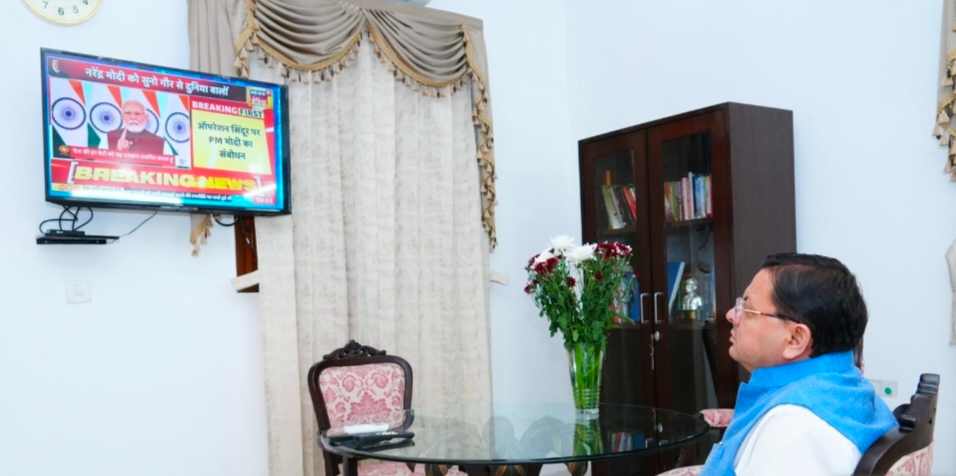 देहरादून ।मुख्यमंत्री पुष्कर सिंह धामी ने सोनवार शाम प्रधानमंत्री नरेंद्र मोदी का राष्ट्र के नाम दिए संदेश को सुना. सीएम ने पीएम के संबोधन को आतंकवाद के विरुद्ध देश के दृढ़ संकल्प का प्रतीक बताया