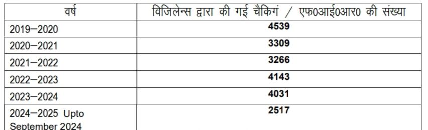 उत्तराखंड पावर कॉरपोरेशन लिमिटेड स्तर पर विजिलेन्स द्वारा विद्युत चोरी रोकने हेतु विगत 5 वर्शो में की गयी कार्यवाही का विवरण निम्न प्रकार है।